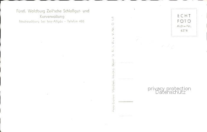 41987547 Neutrauchburg Fuerstl. Waldburg Zeil’sche Schlossgutverwaltung Kurverwaltung Fliegeraufnahme postalisch nicht gelaufen Erhaltung siehe scans KatCode: 11110008436049