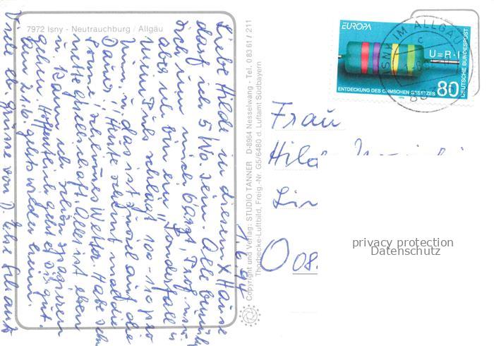 74099673 Neutrauchburg Isny Allgaeu Bayern Fliegeraufnahme postalisch gelaufen Erhaltung siehe scans [WerneD78] alte Postkarte Wern Katcode 11110008436049