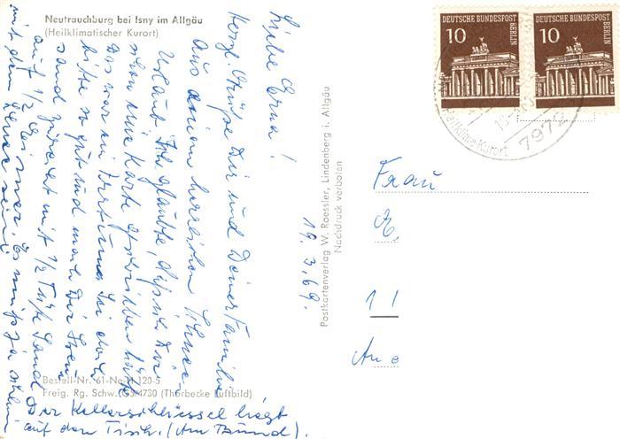 73938717 alte Postkarte Neutrauchburg Isny Heilklimatischer Kurort im Winter postalisch gelaufen Fliegeraufnahme Erhaltung siehe scans [FriedD77] KatCode: 11110008436049