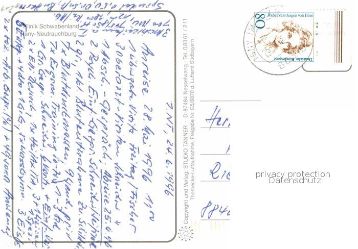 72818222 alte Postkarte Neutrauchburg Klinik Schwabenland Fliegeraufnahme postalisch gelaufen Erhaltung siehe scans [NatalD47] KatCode: 11110008436049