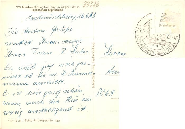 73889254 alte Postkarte Neutrauchburg Kuranstalt Alpenblick postalisch gelaufen Erhaltung siehe scans [WerneD78] KatCode: 11110008436049