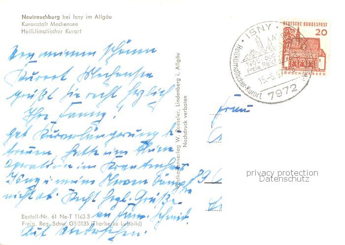 73761821 alte Postkarte Neutrauchburg Kuranstalt Mechensee Fliegeraufnahme postalisch gelaufen Erhaltung siehe scans [FriedD77] KatCode: 11110008436049