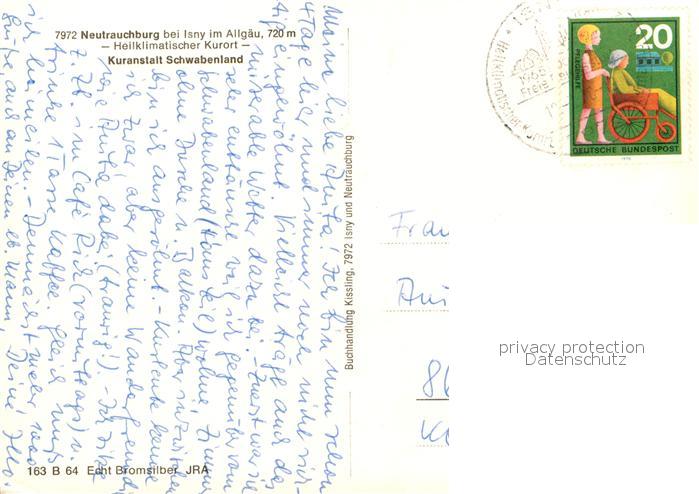 73294892 alte Postkarte Neutrauchburg Kuranstalt Schwabenland postalisch gelaufen Erhaltung siehe scans [NatalD47] KatCode: 11110008436049