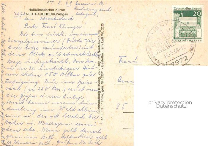 72765308 alte Postkarte Neutrauchburg Panorama Heilklimatischer Kurort Fliegeraufnahme postalisch gelaufen Erhaltung siehe scans [FriedD77] KatCode: 11110008436049