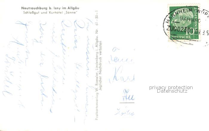 73271868 alte Postkarte Neutrauchburg Panorama Schlossgut und Kurhotel Sonne postalisch gelaufen Bahnpost Erhaltung siehe scans [FriedD77] KatCode: 11110008436049