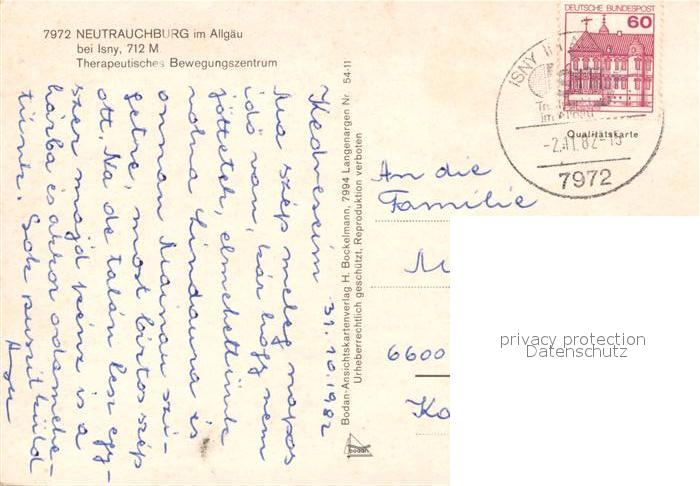 73143122 alte Postkarte Neutrauchburg Therapeutisches Bewegungszentrum postalisch gelaufen Erhaltung siehe scans [WerneD78] KatCode: 11110008436049