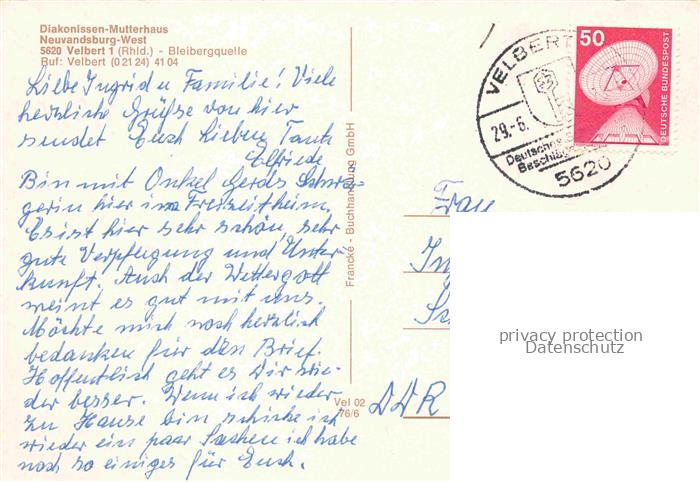 74020985 alte Postkarte Neuvandsburg West Velbert Diakonissen-Mutterhaus Schule Freizeitheim Kirchhalle Bergesruh Altenheim Erholungsheim postalisch gelaufen Erhaltung siehe scans [FriedD77] KatCode: 11110005158032