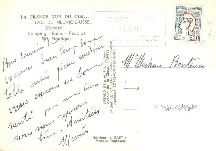 13573881 carte postale Neuvic Correze Lac de Neuvic-d’Ussel Camping Bains Pedalos Vue aerienne postalisch gelaufen Erhaltung siehe scans [WerneD78] KatCode: 11170019319148