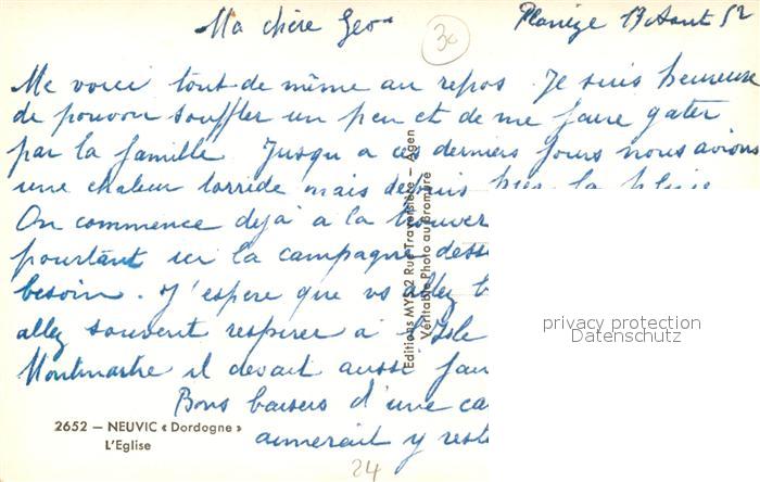 13498177 Neuvic Dordogne Kirche postalisch nicht gelaufen Erhaltung siehe scans [KathaD81] KatCode: 11170024324309