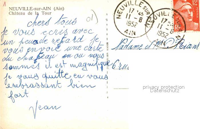 12766859 carte postale Neuville-sur-Ain Chateau de la Tour postalisch gelaufen Erhaltung siehe scans [LiesaD40] KatCode: 11170001201273