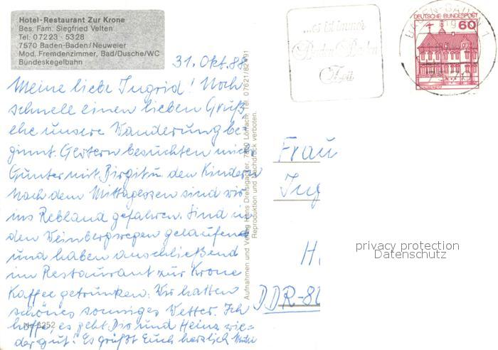 73707664 alte Postkarte Neuweier Hotel Restaurant Gastraeume Terrasse Turm Fliegeraufnahme postalisch gelaufen Erhaltung siehe scans [WerneD78] KatCode: 11110008211000
