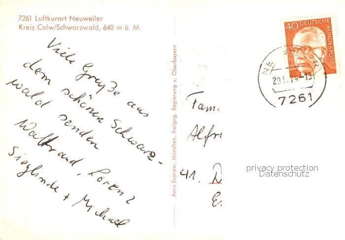 73812826 alte Postkarte Neuweiler Calw Fliegeraufnahme postalisch gelaufen Erhaltung siehe scans [WerneD78] KatCode: 11110008235050