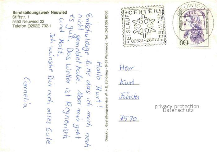 74050431 alte Postkarte NEUWIED Rhein Berufsbildungswerk Neuwied postalisch gelaufen Erhaltung siehe scans [WerneD78] KatCode: 11110007138045