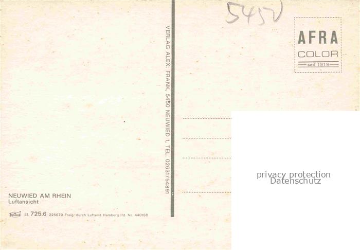 74084460 NEUWIED Rhein Fliegeraufnahme postalisch nicht gelaufen Erhaltung siehe scans [WerneD78] KatCode: 11110007138045