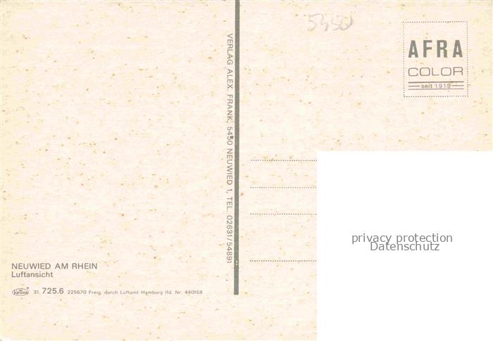 74050439 NEUWIED Rhein Fliegeraufnahme postalisch nicht gelaufen Erhaltung siehe scans [WerneD78] KatCode: 11110007138045