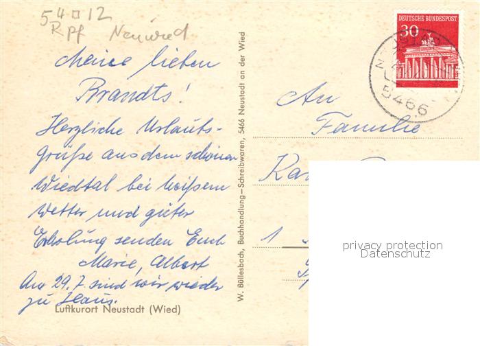 72930796 alte Postkarte Neuwied Rhein Fliegeraufnahme postalisch gelaufen Erhaltung siehe scans [LiesaD40] KatCode: 11110007138045