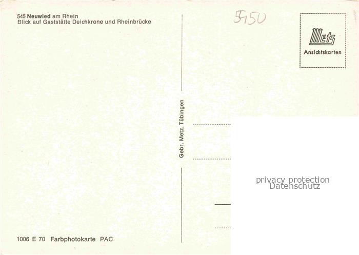 74050441 NEUWIED Rhein Gaststaette Deichkrone und Rheinbruecke postalisch nicht gelaufen Erhaltung siehe scans [WerneD78] KatCode: 11110007138045