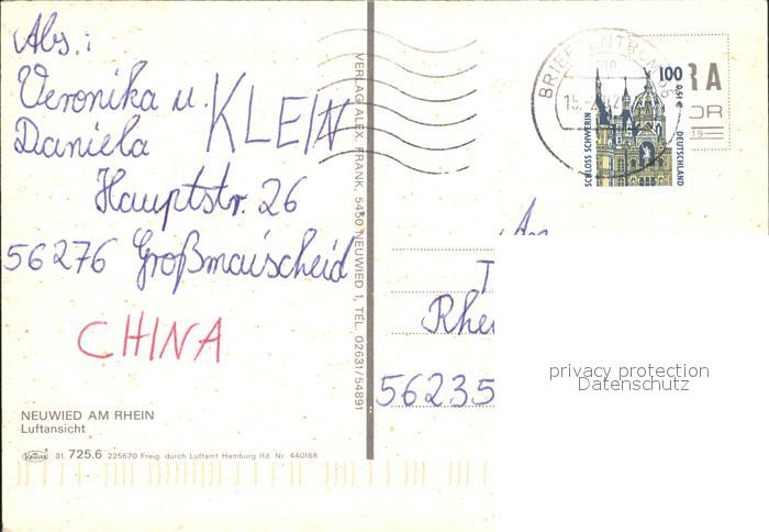 72157610 alte Postkarte Neuwied Rhein Rheinbruecke Fliegeraufnahme postalisch gelaufen Erhaltung siehe scans KatCode: 11110007138045