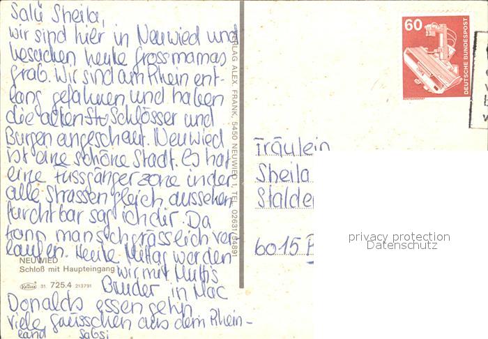 72381811 alte Postkarte Neuwied Rhein Schloss Haupteingang postalisch gelaufen Erhaltung siehe scans KatCode: 11110007138045