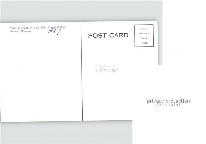 71941601 old postcard Nevada Missouri The Tower of Main Hall Cottey College postalisch gelaufen Erhaltung siehe scans KatCode: 14140270000000