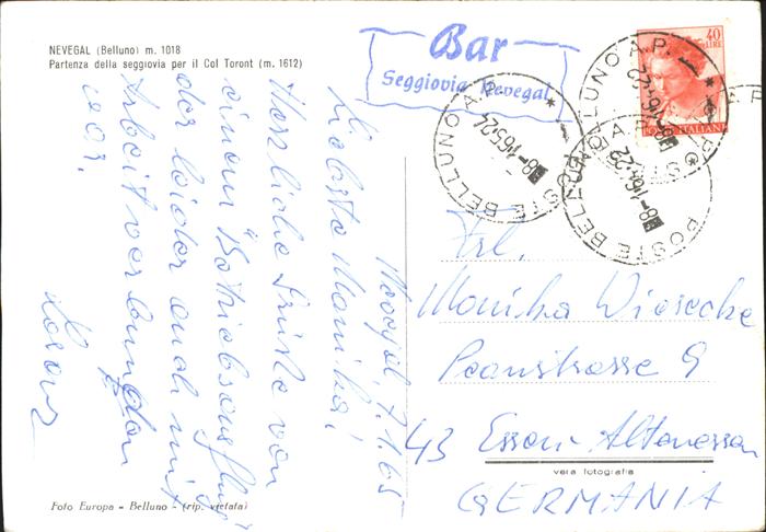 old postcard Nevegal Wintersportplatz Sessellift Col Toront Alpenpanorama postalisch gelaufen Erhaltung siehe scans