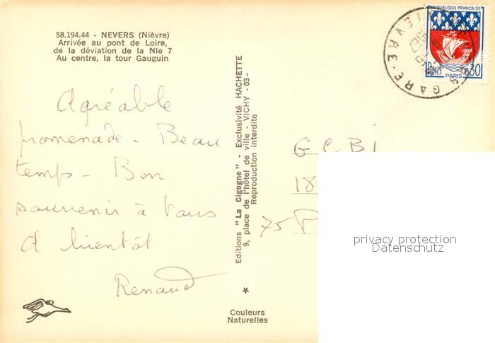 13593255 Nevers 58 Arrivée au Pont de Loire au centre Tour Gauguin postalisch gelaufen Erhaltung siehe scans [FriedD77] carte postale Frie Katcode 11170058358194