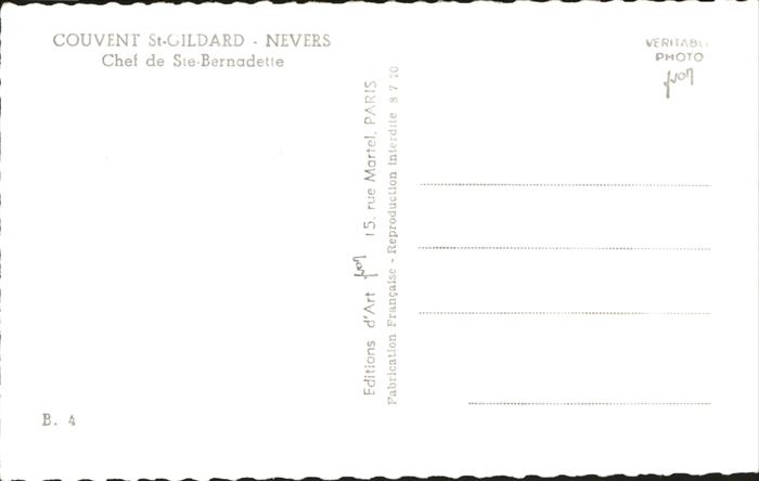 11341271 Nevers 58 Couvent Saint Gildard Chef de Sainte Bernadette Kloster KatCode 11170058358194