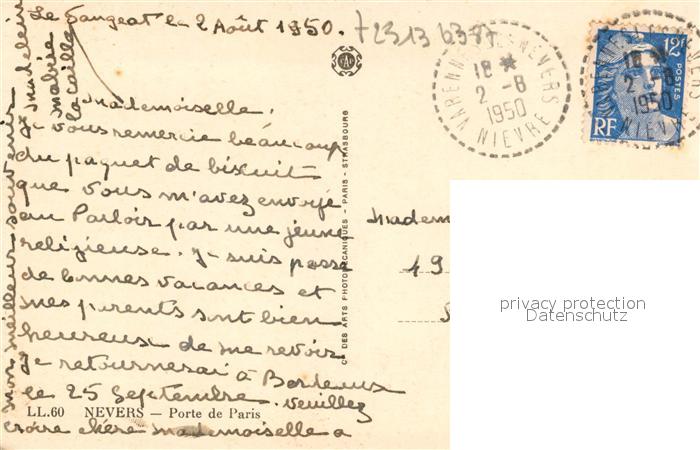 13577426 carte postale Nevers 58 Porte de Paris postalisch gelaufen Erhaltung siehe scans [LiesaD40] KatCode: 11170058358194
