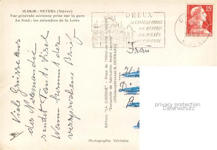 13709462 Nevers 58 Vue generale aerienne prise sur la gare Meandres de la Loire postalisch gelaufen Erhaltung siehe scans [WerneD78] carte postale Wern Katcode 11170058358194