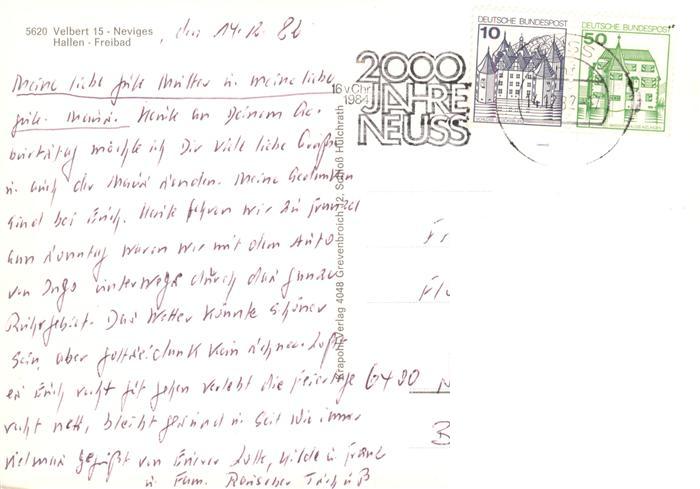 73943281 alte Postkarte Neviges Velbert Hallen Freibad postalisch gelaufen Erhaltung siehe scans [WerneD78] KatCode: 11110005158032