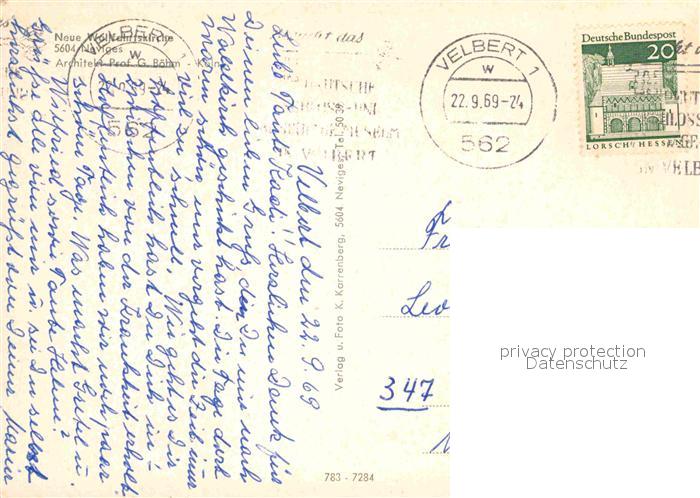 72855123 alte Postkarte Neviges Velbert Neue Wallfahrtskirche postalisch gelaufen Erhaltung siehe scans [AndreD76] KatCode: 11110005158032