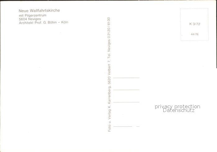 72026804 Neviges Velbert Neue Wallfahrtskirche Fliegeraufnahme Pilgerzentrum postalisch nicht gelaufen Erhaltung siehe scans KatCode: 11110005158032