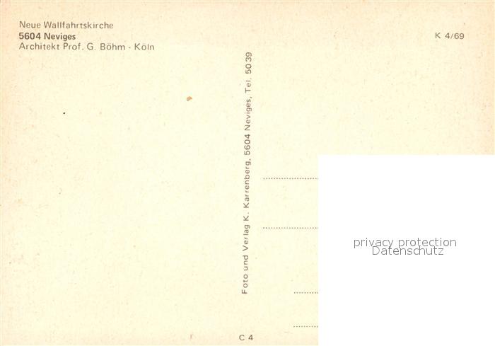 73310805 Neviges Velbert Neue Wallfahrtskirche Innenansicht Kirchenfenster postalisch nicht gelaufen Erhaltung siehe scans [FriedD77] KatCode: 11110005158032