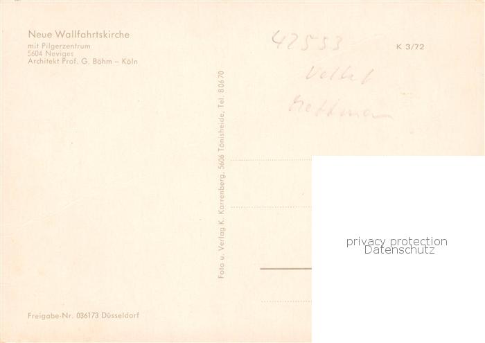 73867886 Neviges Velbert Neue Wallfahrtskirche mit Pilgerzentrum postalisch nicht gelaufen Fliegeraufnahme Erhaltung siehe scans [FriedD77] KatCode: 11110005158032