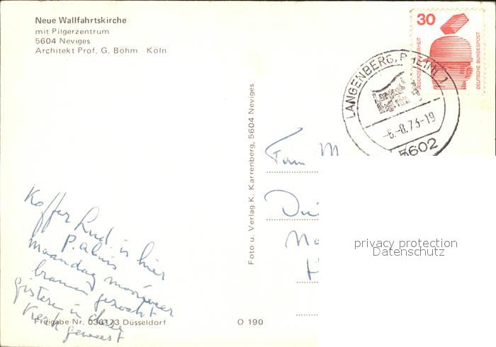 72519893 alte Postkarte Neviges Velbert Neue Wallfahrtskirche Pilgerzentrum postalisch gelaufen Erhaltung siehe scans KatCode: 11110005158032