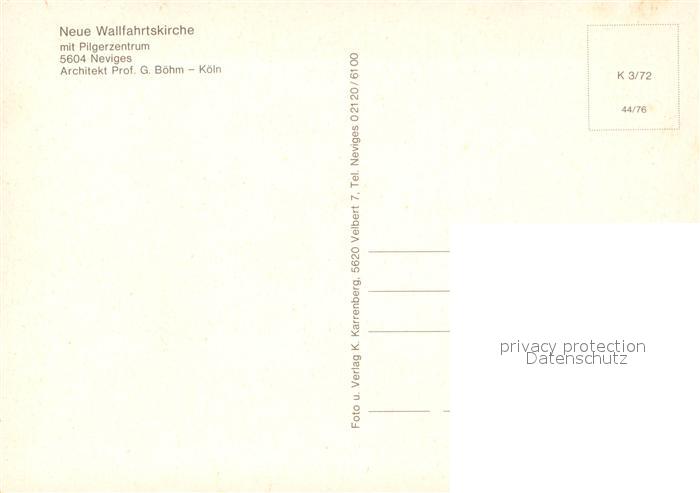 73124098 Neviges Velbert Neue Wallfahrtskirche Pilgerzentrum postalisch nicht gelaufen Erhaltung siehe scans [NatalD47] KatCode: 11110005158032