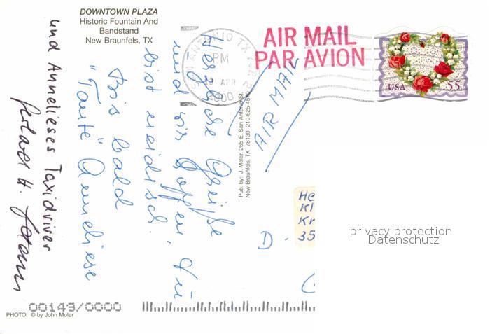 72868496 old postcard New Braunfels Historic Fountain and Bandstand postalisch gelaufen Erhaltung siehe scans [WerneD78] KatCode: 14140460000000