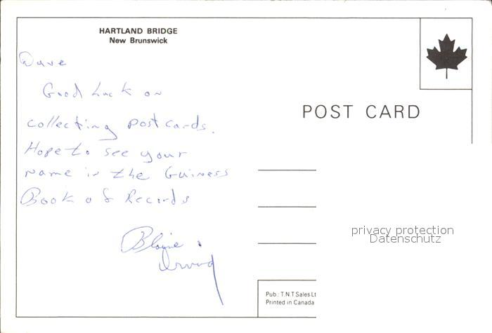 New Brunswick Nouveau Brunswick Hartland Bridge postalisch nicht gelaufen Erhaltung siehe scans