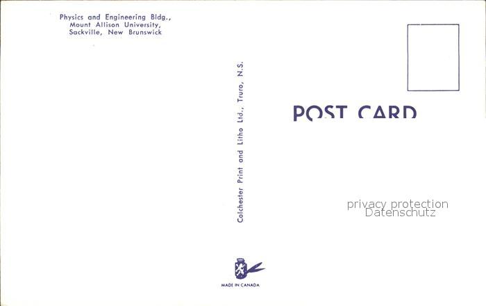 New Brunswick Nouveau Brunswick Sackville Physik Maschinenbau Mount Allison Universitaet postalisch nicht gelaufen Erhaltung siehe scans