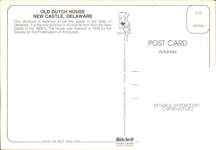 72279646 New Castle Delaware Old Dutch House postalisch nicht gelaufen Erhaltung siehe scans KatCode: 14140080000000