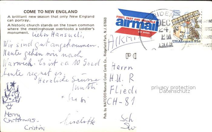 11686213 old postcard New England church postalisch gelaufen Erhaltung siehe scans KatCode: 14140360000000