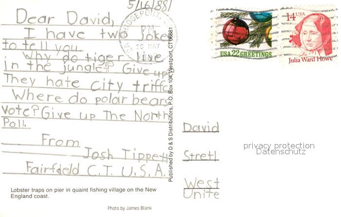 73130375 old postcard New England Hafen postalisch gelaufen Erhaltung siehe scans [NatalD47] KatCode: 14140360000000