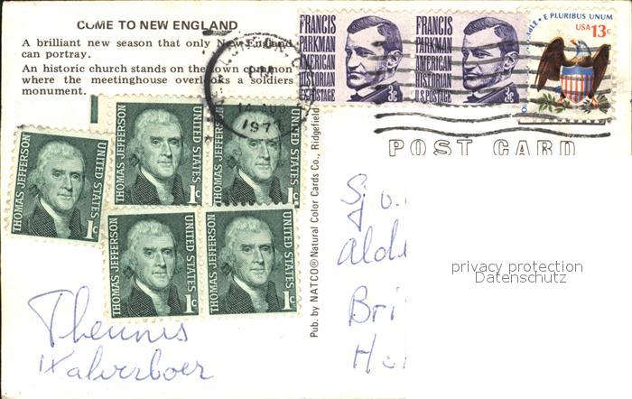 72447223 old postcard New England Kirche postalisch gelaufen Erhaltung siehe scans KatCode: 14140360000000