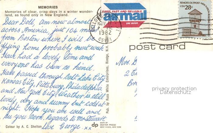 73127735 old postcard New England Memories postalisch gelaufen Erhaltung siehe scans [KathaD81] KatCode: 14140360000000