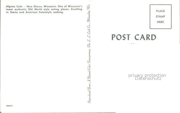 11688489 New Glarus Alpine Cafe postalisch nicht gelaufen Erhaltung siehe scans KatCode: 14140520000000