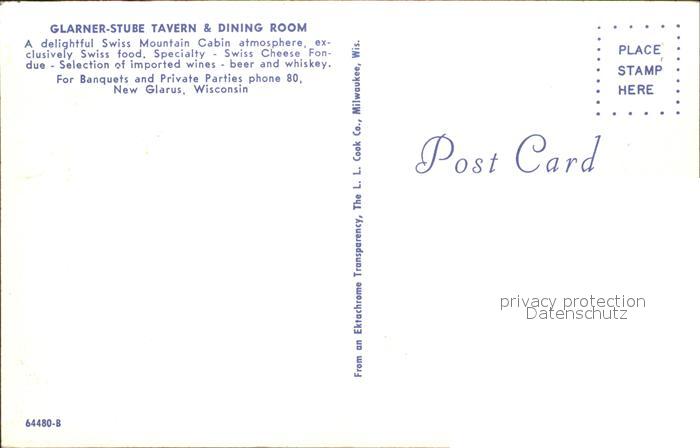 11693849 New Glarus Glarner Stube Tavern Dining Room Swiss Mountain Cabin postalisch nicht gelaufen Erhaltung siehe scans KatCode: 14140520000000