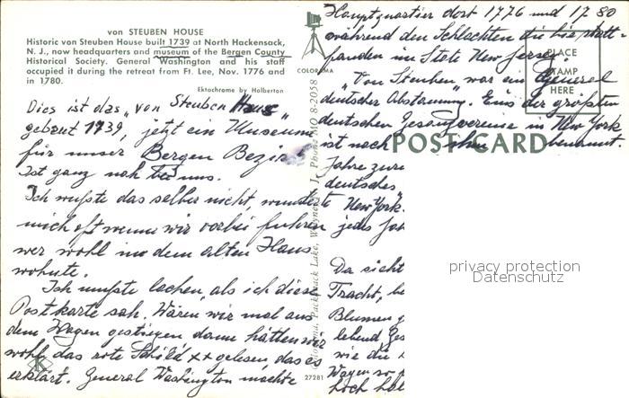 72444357 New Hackensack New Jersey von Steuben House built 1739 Museum Bergen County Historical Society postalisch nicht gelaufen Erhaltung siehe scans KatCode: 14140320000000
