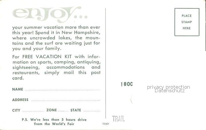 72316473 New Hampshire Free Guide postalisch nicht gelaufen Werbekarte (keine Postkarte) Erhaltung siehe scans KatCode: 14140370000000