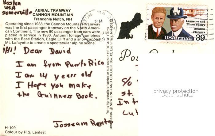 73131582 old postcard New Hampshire US-State Franconia Notch Cannon Mountain postalisch gelaufen Erhaltung siehe scans [KathaD81] KatCode: 14140310000000