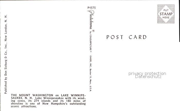 72444351 New Hampshire US-State The Mount Washington Boat on Lake Winnipesaukee postalisch nicht gelaufen Erhaltung siehe scans KatCode: 14140310000000